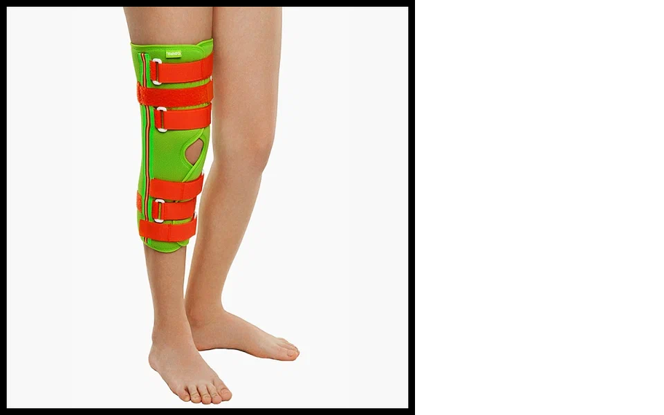 Разъемная конструкция ортеза облегчает его надевание при сильном отеке и поверх бинтовых повязок. Обеспечивает быстрый доступ к коленному суставу, позволяя выполнять перевязки и иные медицинские процедуры;
