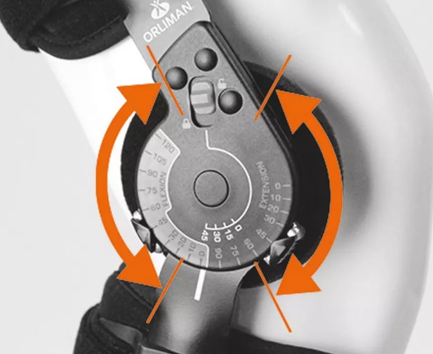 В ортезе предусмотрен контроль сгибания-разгибания от 0° до 120°: