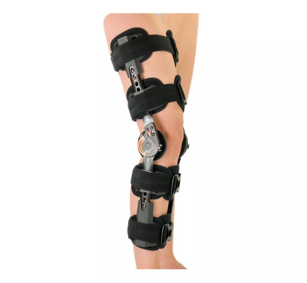Жесткая фиксация, иммобилизация коленного сустава. Контроль сгибания и разгибания.
