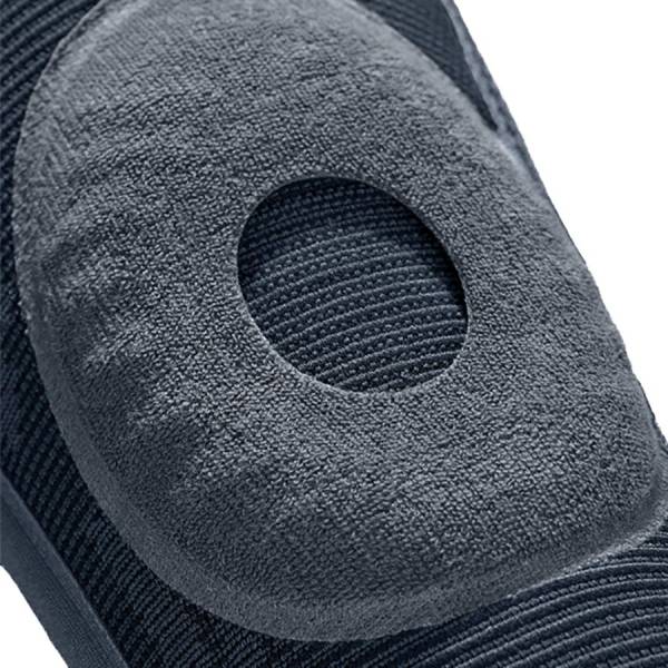 оленный бандаж Genumedi с силиконовым кольцом применяется при легких травмах, артритах и артрозах коленного сустава. Даже при интенсивных физических нагрузках это изделие не будет «сползать» с колена, ведь в нем используется сразу несколько инновационных решений: боковые ребра жесткости предотвращают образование складок и последующее сползание, а специальные силиконовые "капли" на внутренней стороне бандажа обеспечивают надежное сцепление с кожей. Силиконовое кольцо по передней части защищает коленную чашечку и корректирует ее положение. Бандаж изготовлен из высокоэластичной, дышащей ткани, связанной по технологии Clima Comfort, которая надежно отводит влагу во время физических нагрузок и не раздражает кожу.