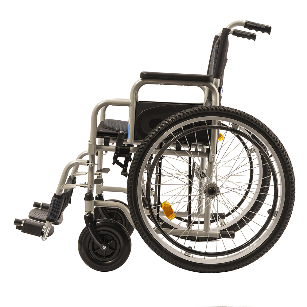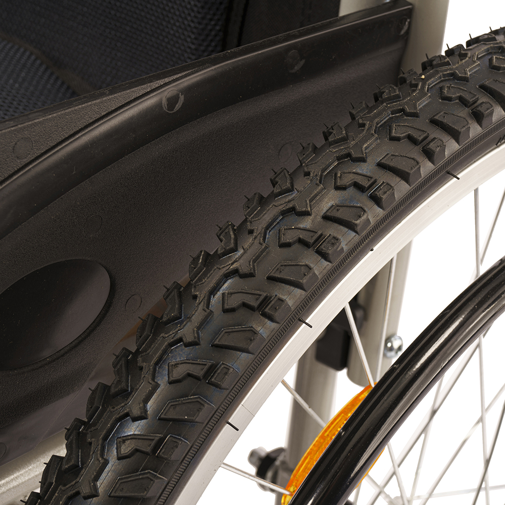 Сбалансированная конструкция на стальной раме сочетает в себе надежность и функциональность, обеспечивая плавность хода и уверенность на любом покрытии. Модель оснащена крупными задними колесами диаметром 60 см с пневматическими шинами, что делает ее отличным выбором для активного использования.