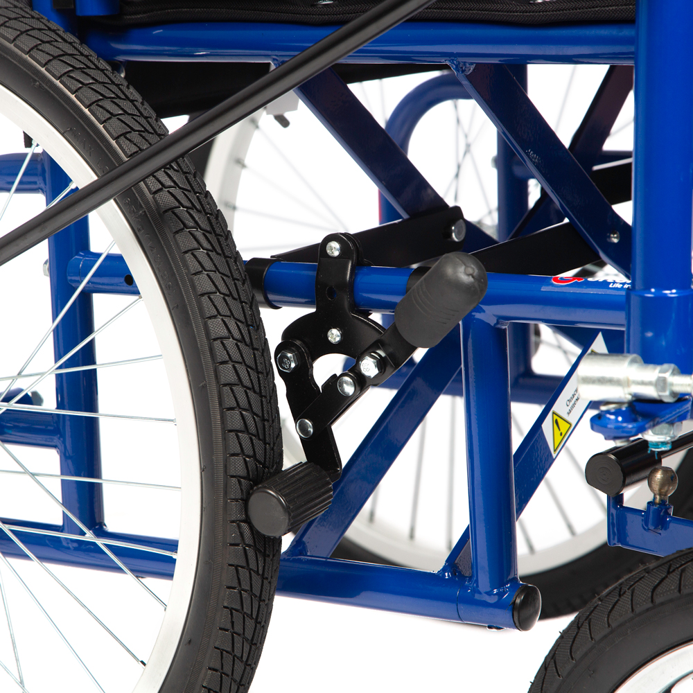 Оснащена рычажным механизмом, позволяющим самостоятельно управлять коляской, меняя скорость передвижения и направление.