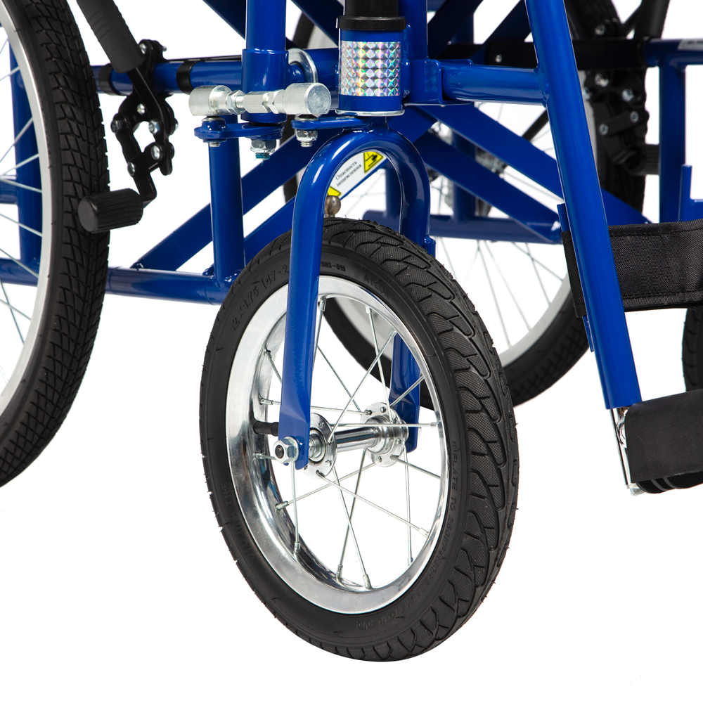 Передние колеса увеличенного диаметра имеют надежное сцепление с дорожным покрытием и обеспечивают устойчивость конструкции.