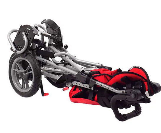 Компактная коляска с механизмом складывания по типу «трость» c aиксированным углом наклона сиденья 10°. Подходит детям, которые могут самостоятельно сидеть, держать голову.