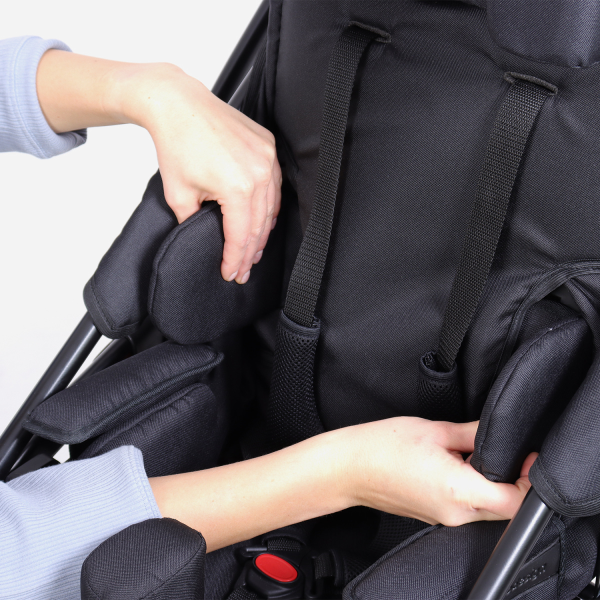 Подлокотники дополнительно повышают комфорт использования коляски, обеспечивая пользователю дополнительную поддержку. HIPPO+ Maxi™ также оснащен регулируемыми подушечками для груди и бедер, что повышает стабилизацию во время путешествия. Эти инновационные элементы позволяют коляске идеально адаптироваться к индивидуальным потребностям пользователя.