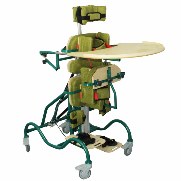 широкие возможности регулировок, позволяющие адаптировать изделие ко всем пациентам с учетом антропометрических данных и индивидуальных особенностей; большие съемные регулируемые столы для различных видов вертикализации.