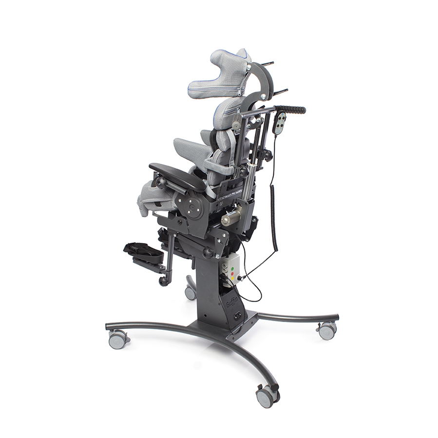 BAFFIN AUTOMATIC – это ортопедическое кресло-коляска с функцией вертикализации. Многофункциональное устройство BAFFIN AUTOMATIC позволяет пациенту принимать три положения: сидя, лежа и стоя. Доступно в трех размерах: S, M, L для детей ростом от 85 до 135 см.