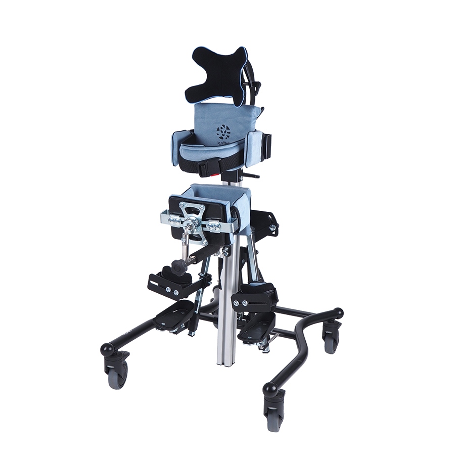 Вертикализатор Lori обеспечивает поддержку бедер, спины, таза и туловища с помощью подушек и двух стабилизирующих ремней.