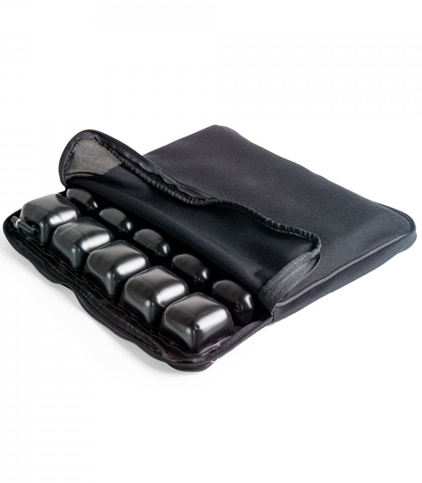 Подушка принимает индивидуальную форму пациента и обеспечивает полное погружение крестца и седалищной части. Ячеистая структура обеспечивает необходимый воздухообмен. Форма подушки регулируется надувным клапаном.