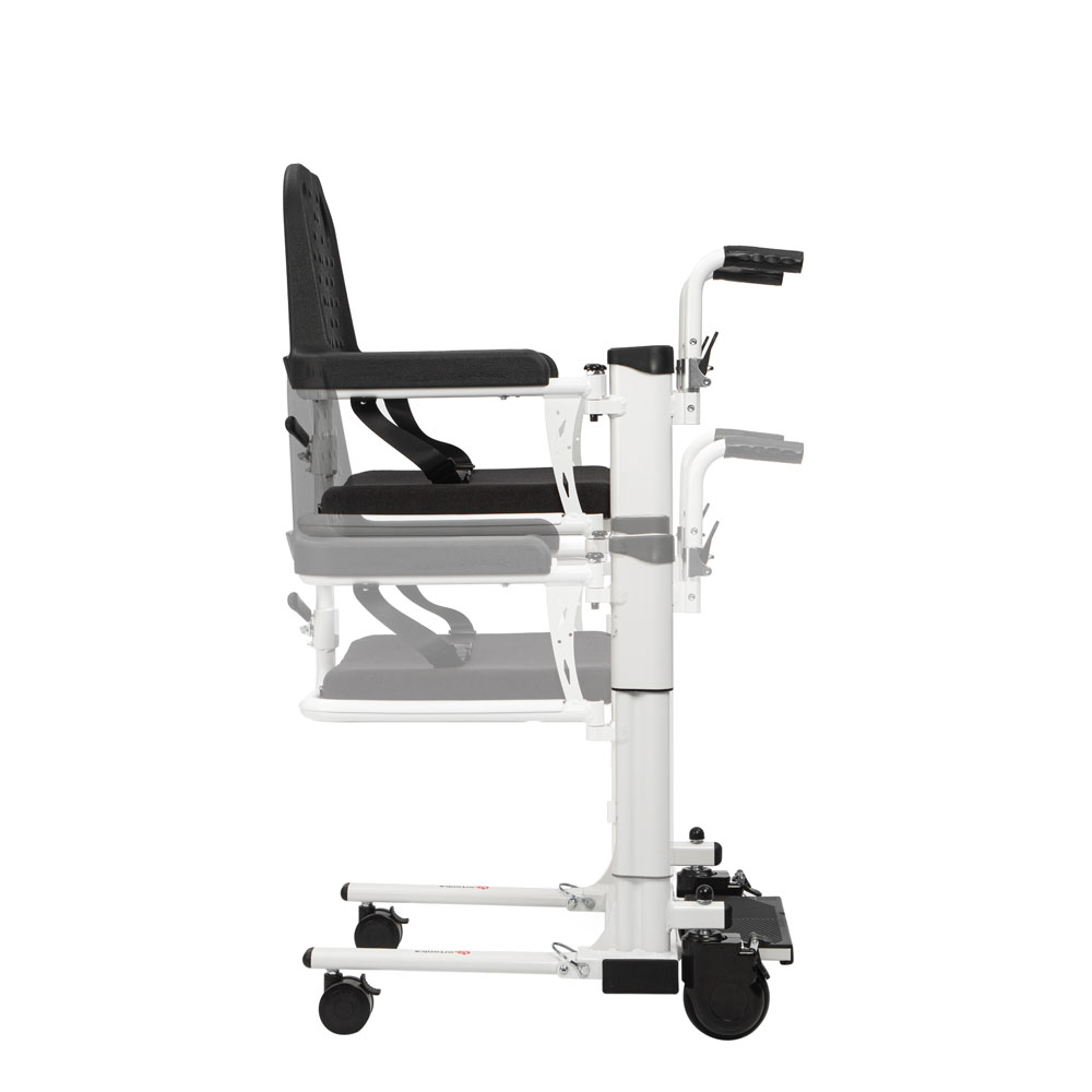 Кресло-стул облегчает пересаживание с кровати на коляску. Его удобно использовать при перемещении, в том числе в туалет и ванную комнату. При необходимости заменяет стационарный унитаз. Удобен при использовании рядом со столом, раковиной и другой мебелью.