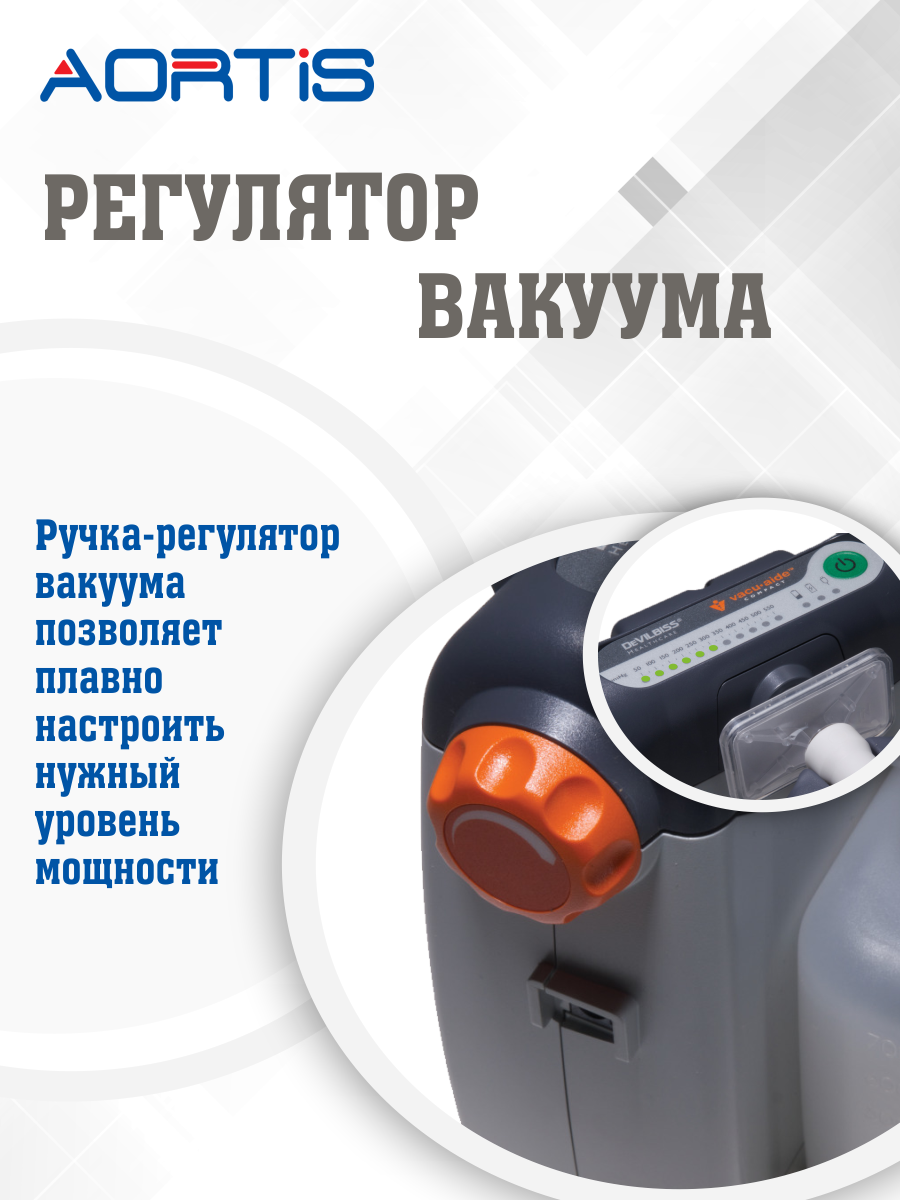 Управляется прибор с помощью одной кнопки вкл/выкл и механического регулятора отрицательного давления.
